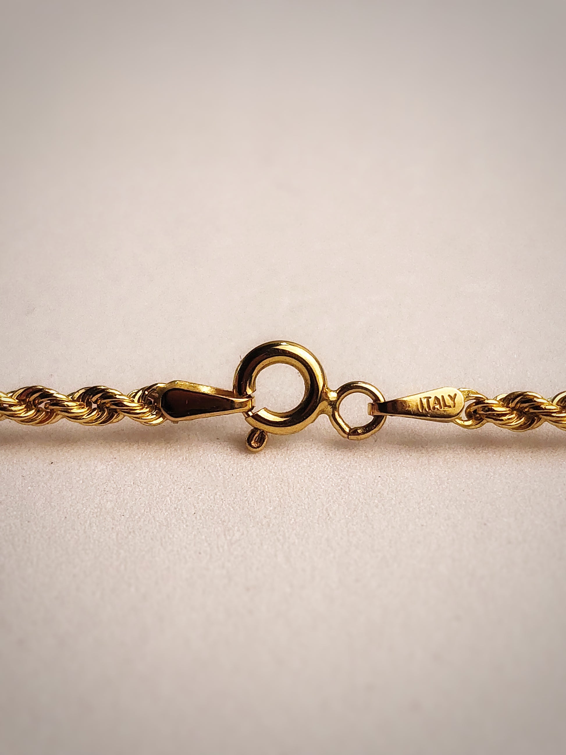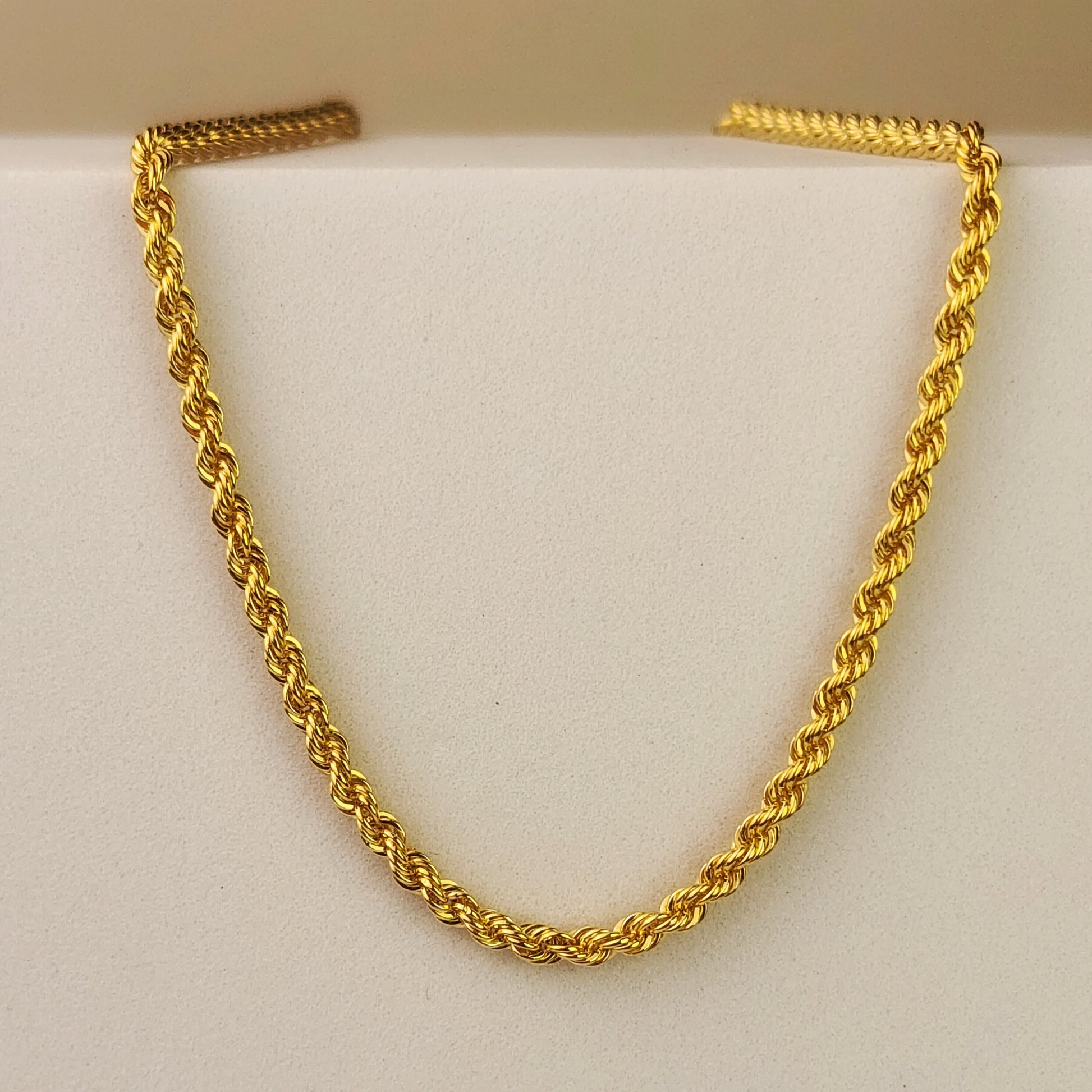 La cadena Cordón está fabricada mediante el entrelazado de varios eslabones pequeños que se unen formando una estructura helicoidal, lo que le da la apariencia de una cuerda de metal precioso. Es uno de los diseños más complejos y admirados debido a la forma en que las superficies curvas capturan y reflejan la luz desde cualquier ángulo.